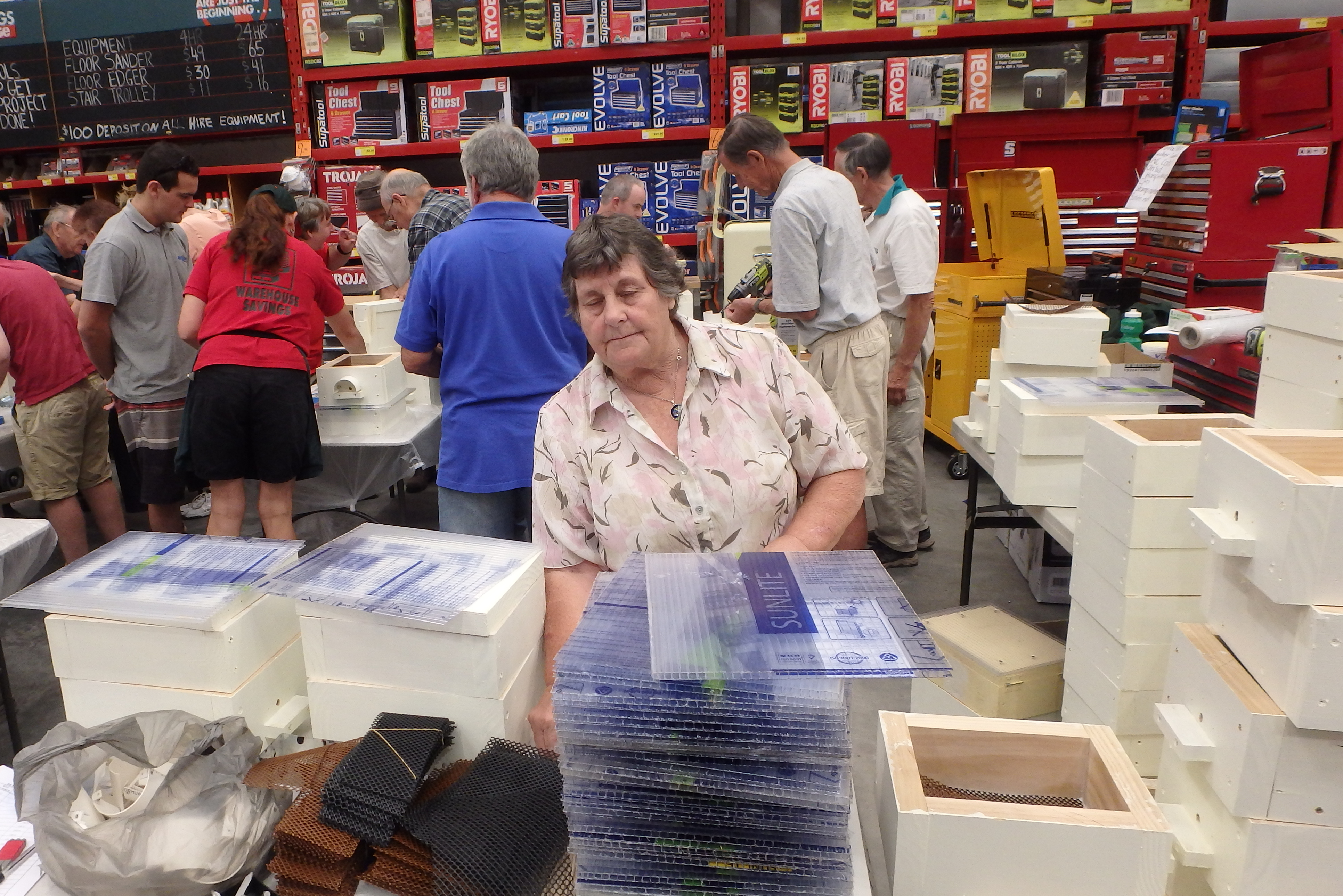 Final Bunnings box building day – Ros organising the stores Posted on December 3, 2018 by clarencenativebees